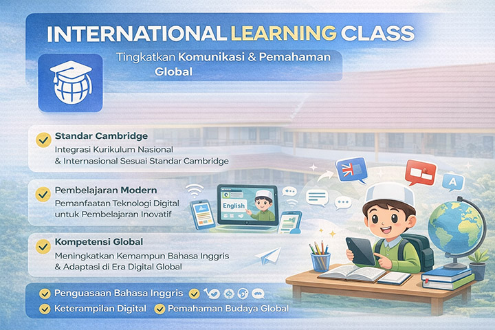 Sementara itu, International Learning Class dirancang untuk meningkatkan kemampuan komunikasi berbahasa Inggris siswa. Kelas ini mengintegrasikan kurikulum nasional dengan pendekatan internasional, termasuk penerapan standar Cambridge. Dalam pelaksanaannya, teknologi digital dimanfaatkan sebagai sarana pembelajaran modern, sehingga siswa tidak hanya fasih berbahasa Inggris, tetapi juga terbiasa menggunakan perangkat digital dalam konteks global.