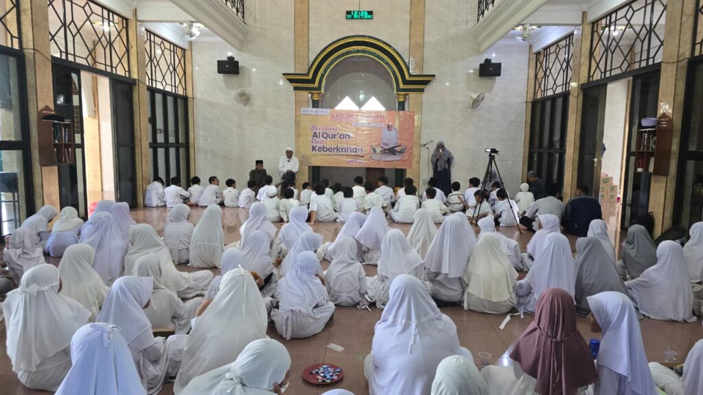 Usai sambutan, para siswa bersama para ustadz dan ustadzah berangkat menuju Masjid Baiturrahman, tempat dilaksanakannya kegiatan Khotmil Qur’an. Dengan suara lantang dan merdu, anak-anak melantunkan ayat-ayat suci Al-Qur’an secara bersama-sama. Momen ini menjadi bukti nyata bahwa ketekunan dan cinta mereka terhadap kalamullah telah berbuah manis.